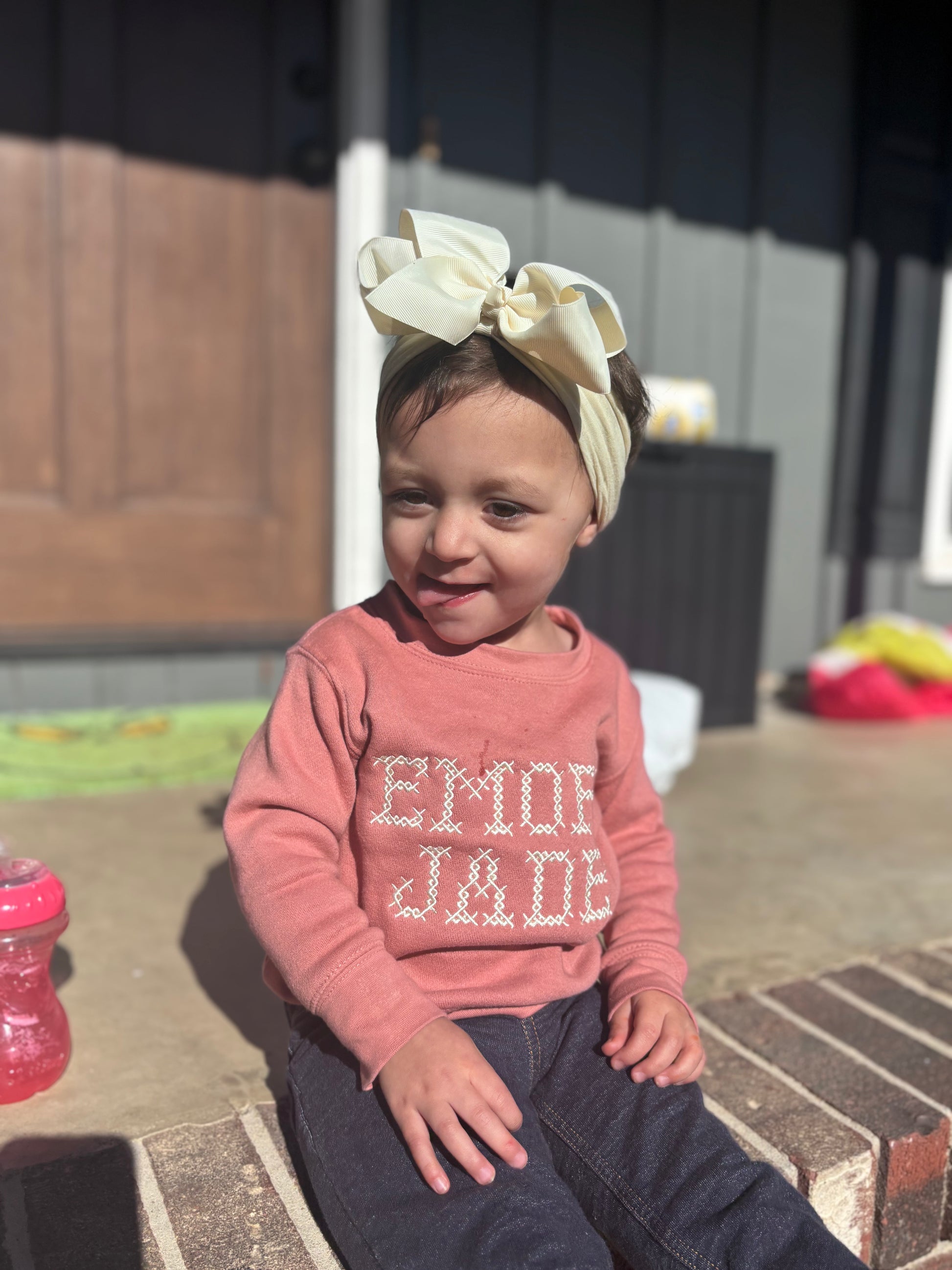 100% cotton sweatshirt, I will match the color of sweatshirt unless you request a different color thread.
